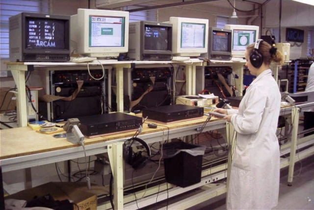 An operator responds to verbal commands issued by the QC Suite, which uses customer's own wav files to communicate in any language. The TV monitors, used here to check the on-screen display from its award-winning DV88 and FMJ DV27 DVD players, are now replaced by a programmable pop-up video window on the QC Suite itself. |