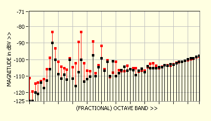 | -109.1dBV @ 83Hz | -112.2dBV @ 94Hz | -100.0dBV @ 105Hz | -111.6dBV @ 118Hz |