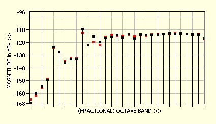 | -164.9dBV @ 20Hz | -161.9dBV @ 25Hz | -156.0dBV @ 32Hz | -148.9dBV @ 40Hz |